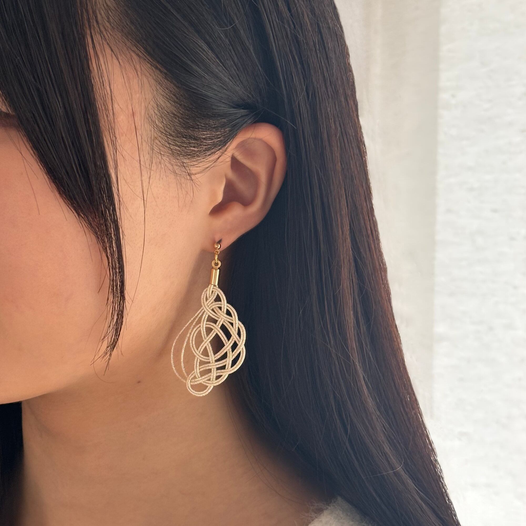水引で仕立てた、軽やかで美しい結びの耳飾りです。